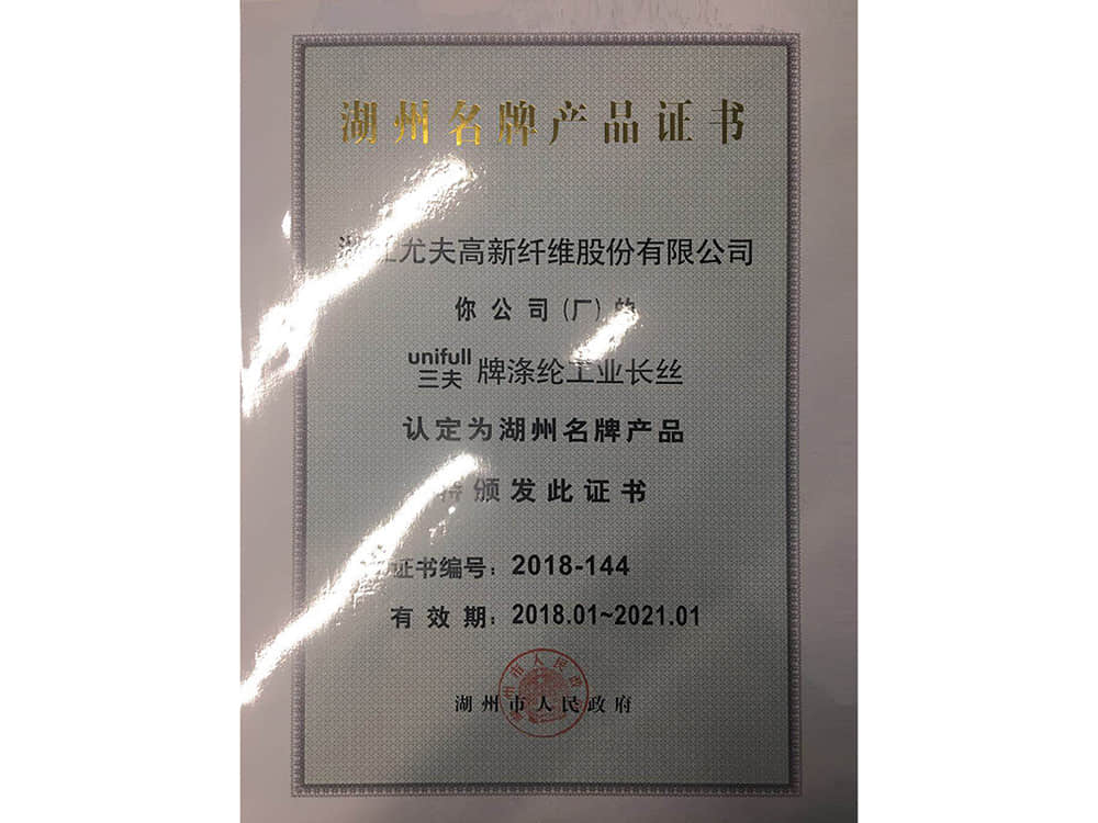 湖州名牌產(chǎn)品證書(shū)2018
